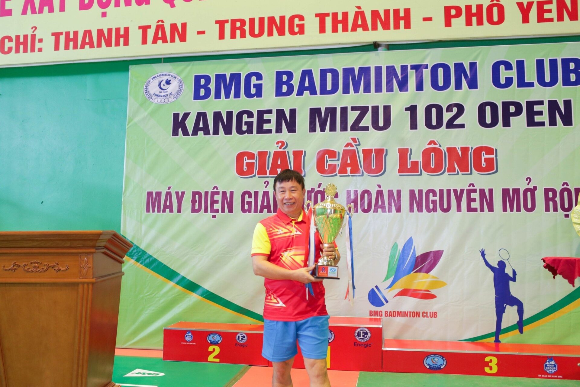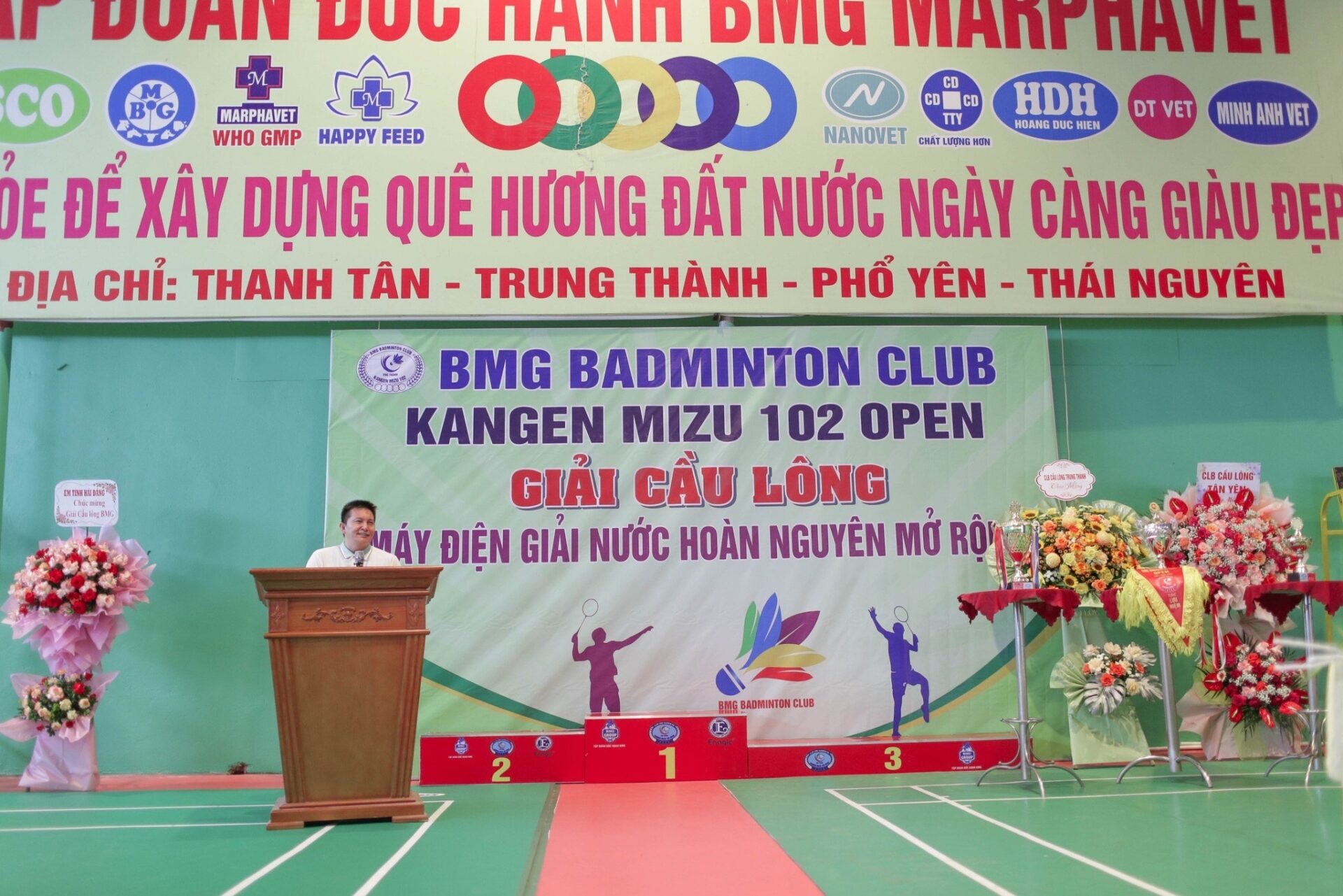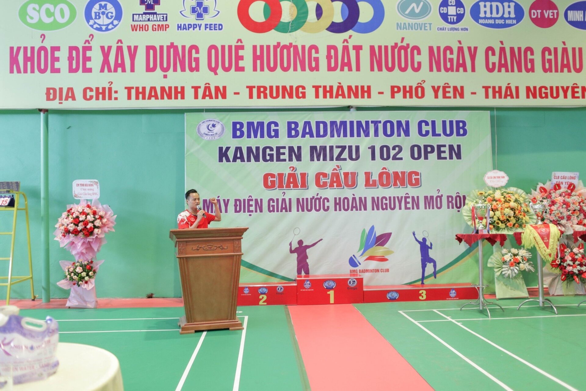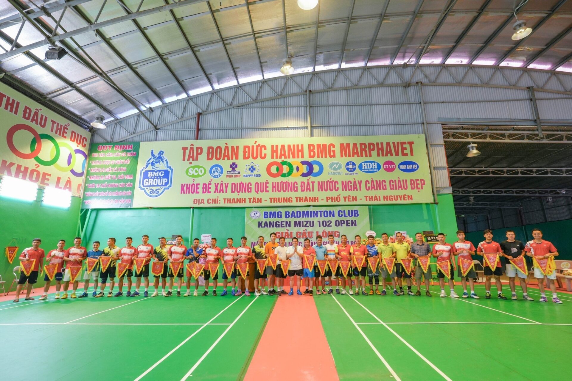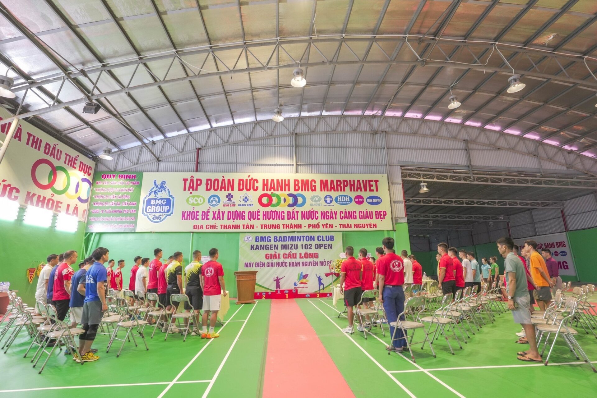 Giải cầu lông “KANGEN MIZU 102 OPEN” được diễn ra vào ngày 15.09.2023 tại nhà thi đấu cầu lông hiện đại của Tập đoàn Đức Hạnh Marphavet BMG với khẩu hiệu “Khỏe để xây dựng Quê hương đất nước ngày càng giàu đẹp”. Giải được tổ chức nhằm tạo sân chơi bổ ích, là cơ hội kết nối, giao lưu, học hỏi, rèn luyện thể chất của các tay vợt BMG BADMINTON CLUB và các đối tác, cá nhân yêu thích cầu lông trên địa bàn.